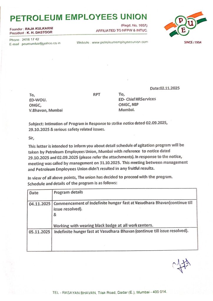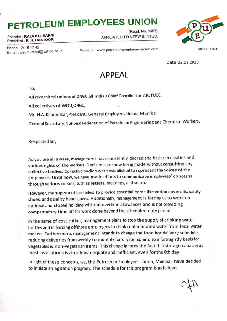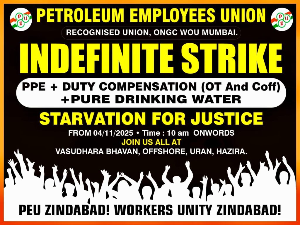 या अन्यायाविरुद्ध पेट्रोलियम एम्प्लॉईज युनियन तीव्र आंदोलन छेडत आहे. यासंदर्भात चर्चा करण्यासाठी VC चे आयोजन करण्यात आले आहे. शुक्रवार, दि.३१.१०.२५ रोजी, रात्री ९.०० वा पुढील लिंक वर क्लिक करून आपण VC त सहभागी होऊ शकता: